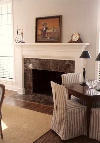 The slipcovered card chairs. I guess I didn't have any blue and white porcelain then - even though it was such an important element in Carither's room. The oil painting over the mantel was bought in Europe by my father.