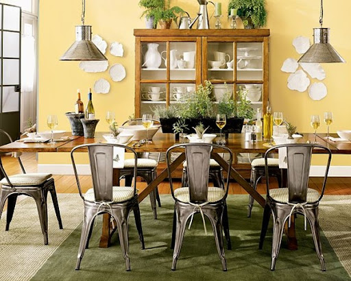 Pottery Barn is filled with surprises lately. What's going on there? The designs have stepped up a notch. These French styled metal chairs are fabulous! So are the pendants. The wood table isn't bad itself.