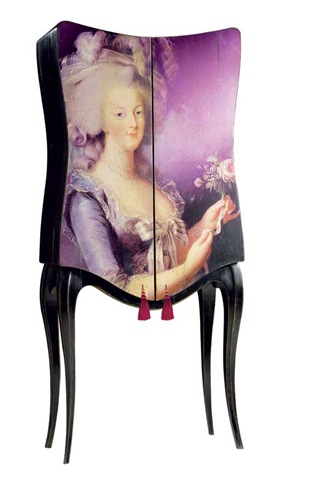 Here, Marie Antoinette is painted on a chest.